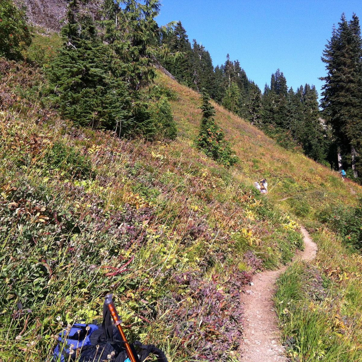 The two peaks are Shuksan and Baker. It was spitting rain by the time we set up camp 4000 feet lower by the Chilliwack River.