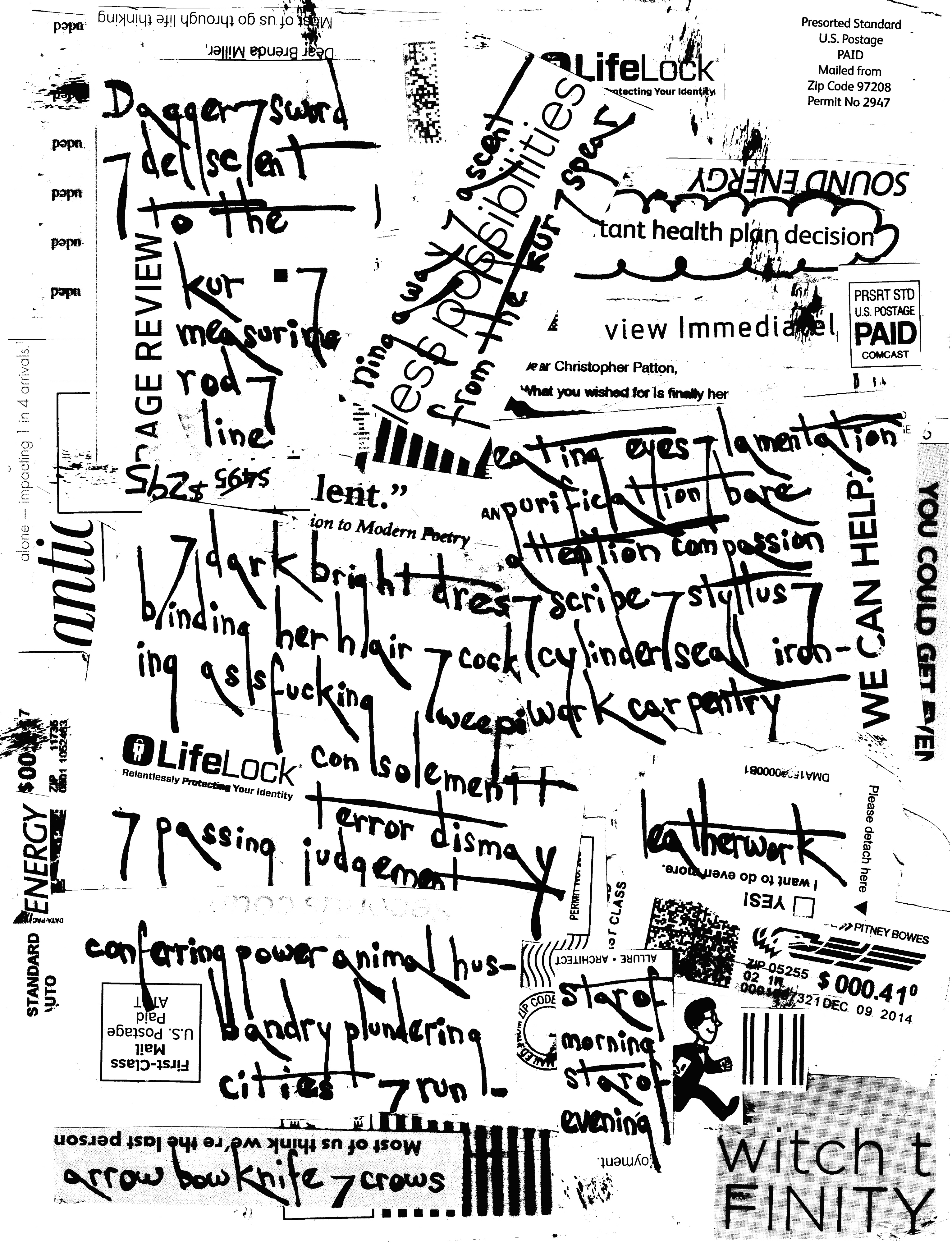 Junk mail is one mark of the marketplace in our day. It is somehow all at once ephemeral (who stops to read this shit before tossing it in the recycling?) and archaic (print? in envelopes? in my mailbox? really?) and omniscient (how on earth did they find me?) and omnipresent (day in, day out, my lord). So, that, and, too, if I can comedically resacralize the peacock by turning the Comcast logo into a funny hat, well, that’s a small whee for me.