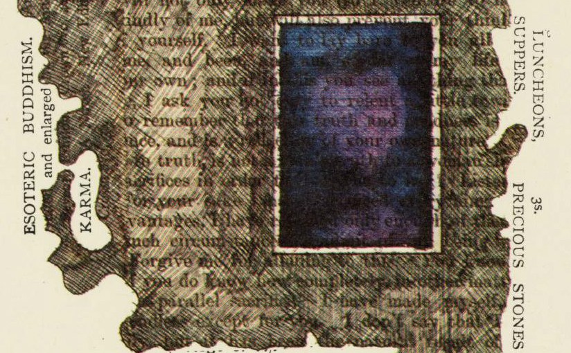 So here’s the first exercise of the quarter for my visual poetry class. Cued by our wandering through Tom Phillips’s well known widely loved yet not for all that at all worn out A Humument.