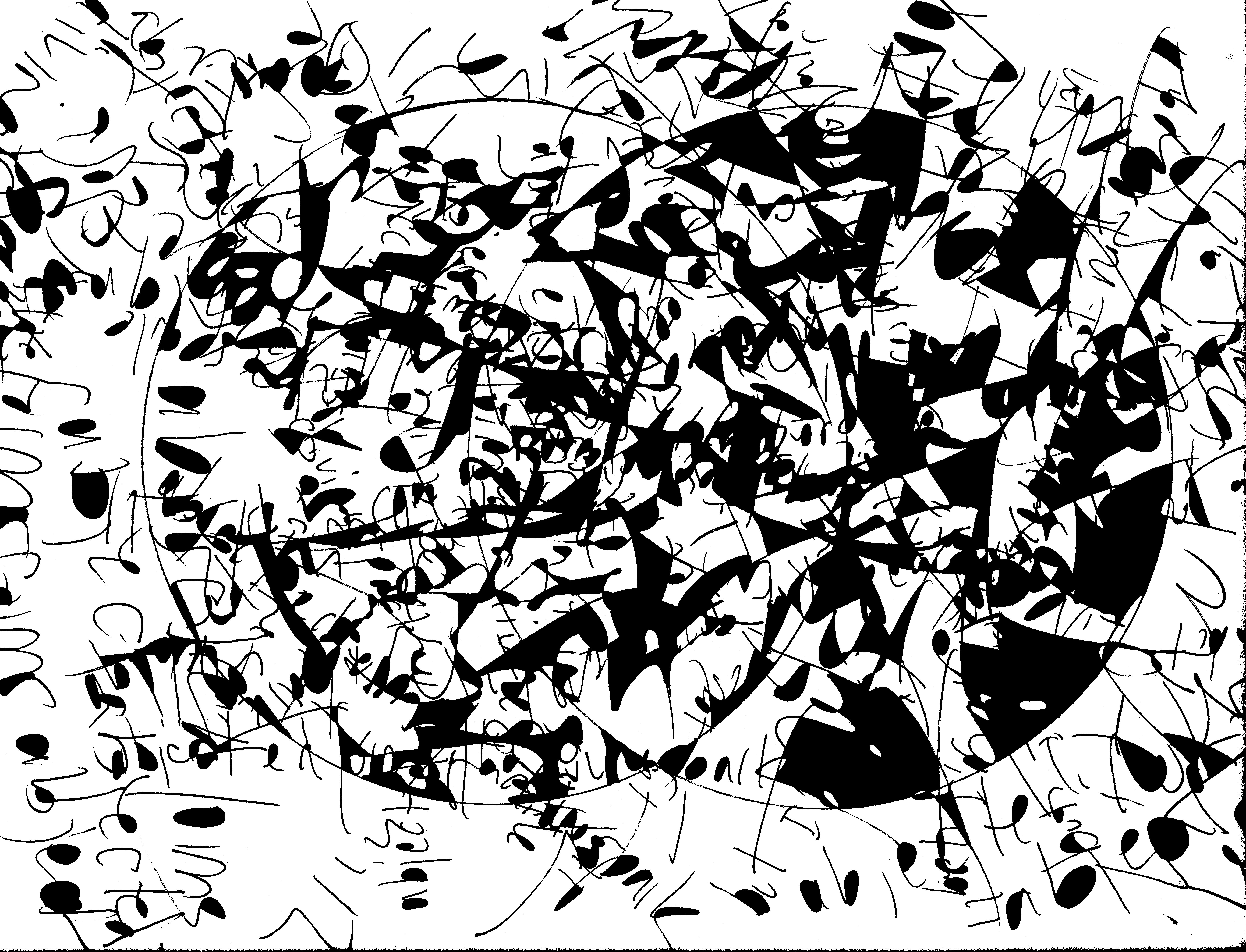 Another image from Overject. Got by inscribing, very quick, two phrases, over and over at all angles, till they become mostly unintelligible. Then beginning to complete the forms the collisions of the letter forms propose.