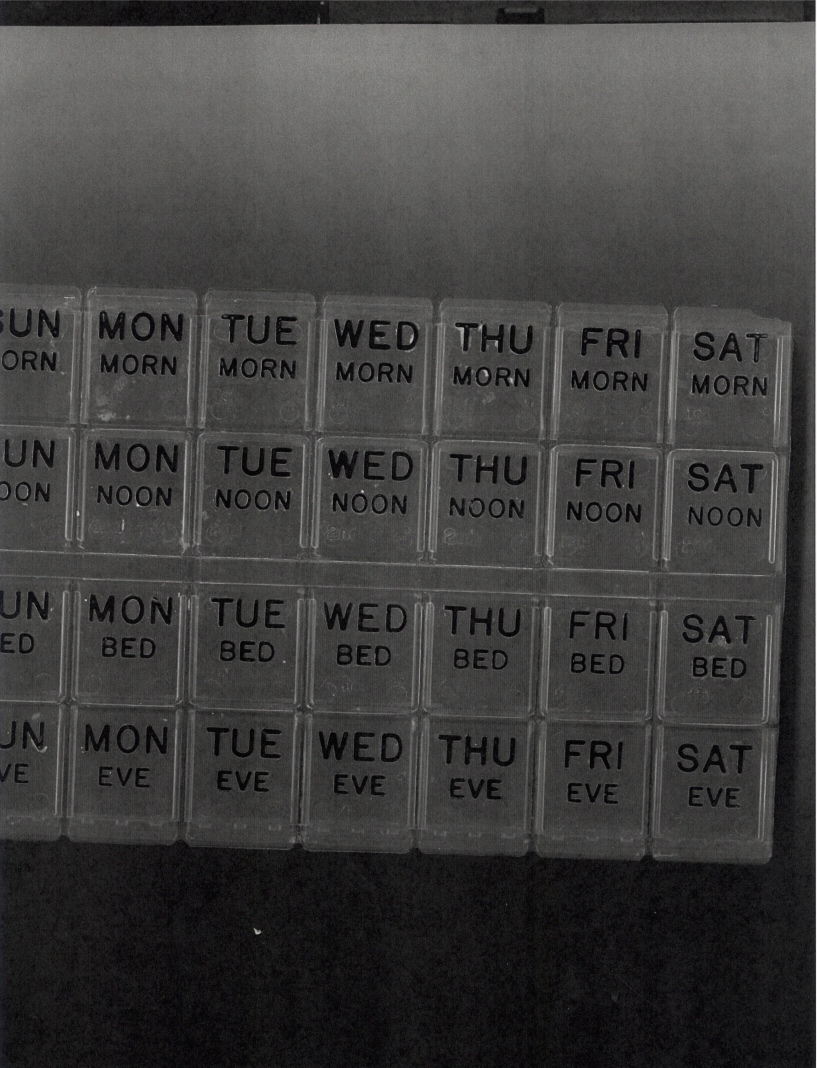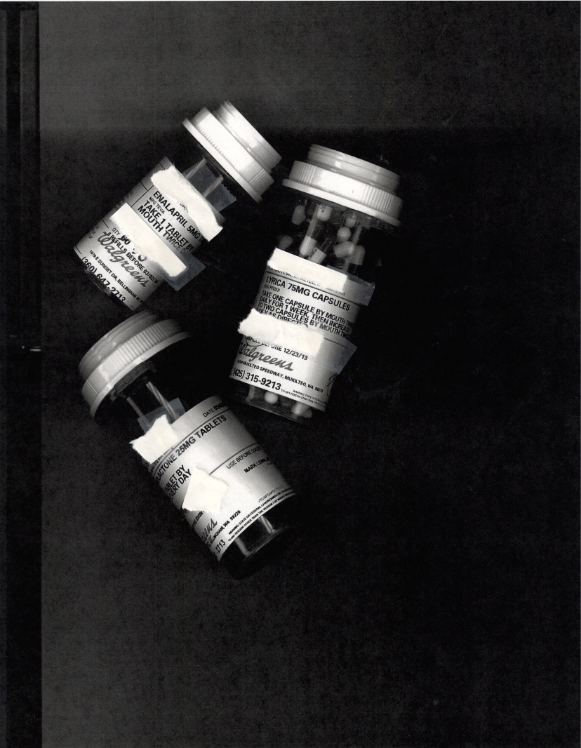 Portfolio-4“As a visual element, I will steer the viewer’s attention to the cover art. There I have my prescription-medication bottles, showcasing the nameplate-labels. Not only do I associate paid-for treatment with disability, but I see this photocopy of personal and yet widely recognizable objects as the prime subject to introduce this portfolio, too. It compartmentalizes disability, and also starts the project’s accessible journey of disabled interpretation.”