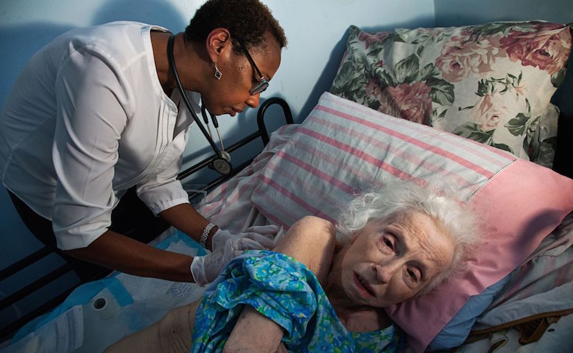 Heather Meyerend examining Mary, 92, at her home in Brooklyn, Sept. 2015. The article.