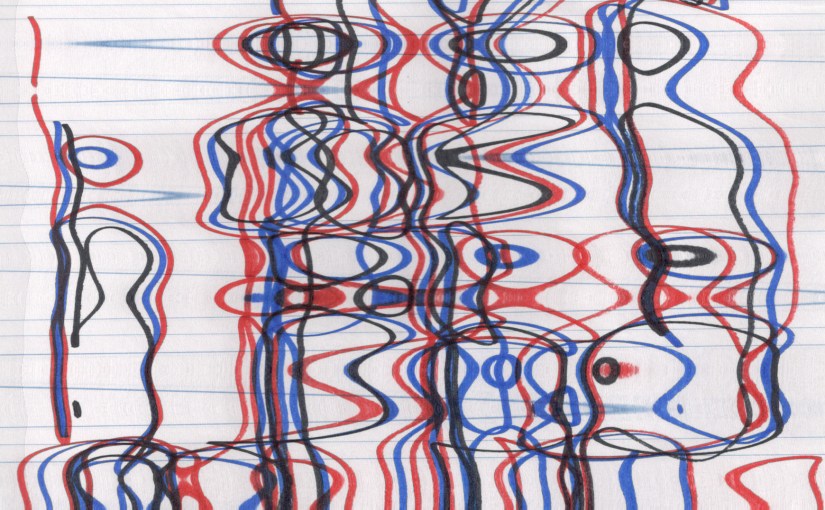 I had hoped to draw asemic eye magic straight from his eructations. Turns out I have to stretch and loosen the material verbally before I can spin it visually. From the tweet