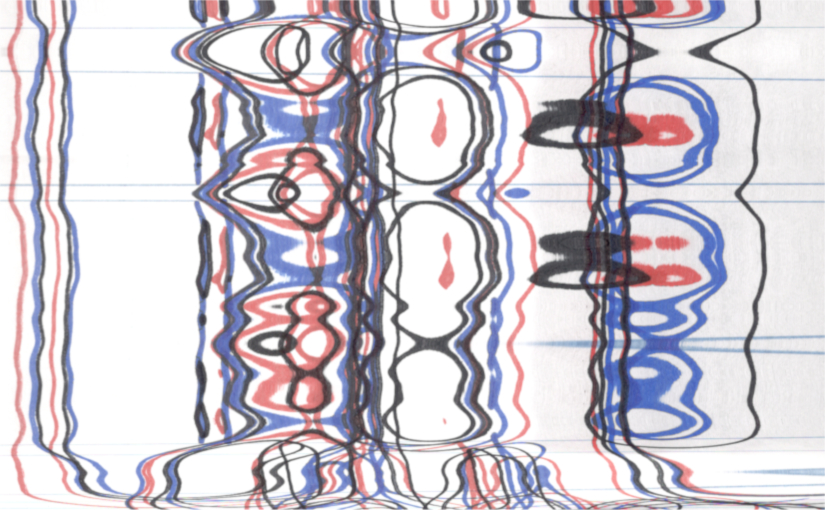 This project uses the indeterminacies of asemic writing and a somewhat aleatory practice to touch on our complicity in the mess we’re in. The academy has terms for that mess, “patriarchy,” “institutional racism,” but those term have hardened some by now, become preconceived notions, and, for many, sites of shame and recrimination.