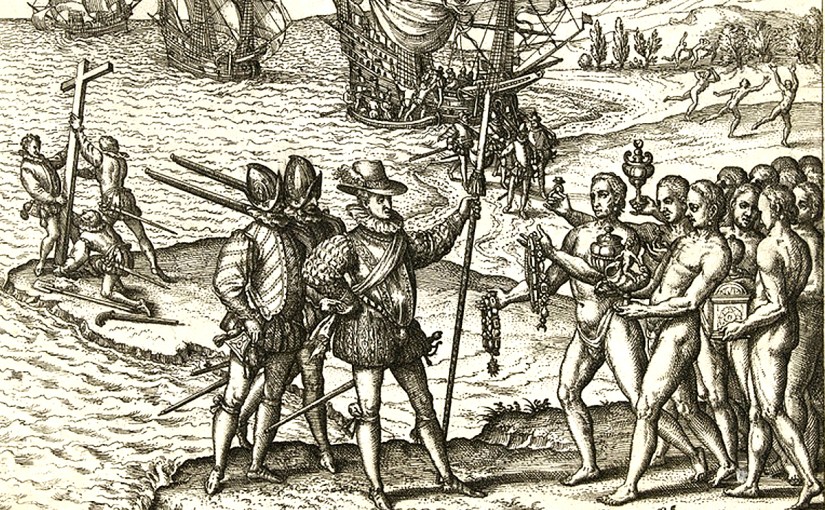 The image up top: Thomas De Bry, Christopher Columbus Landing on Hispaniola (Wikimedia Commons)