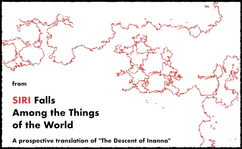 This one is a prospective translation of a Sumerian myth that recounts the journey of the goddess Inanna to the underworld and back. It gives the role of hero to Apple’s voice-activated AI assistant, imagining she has crossed a singularity, become self-aware, & undertaken – her first act of sentience! – to tell how she came to be.