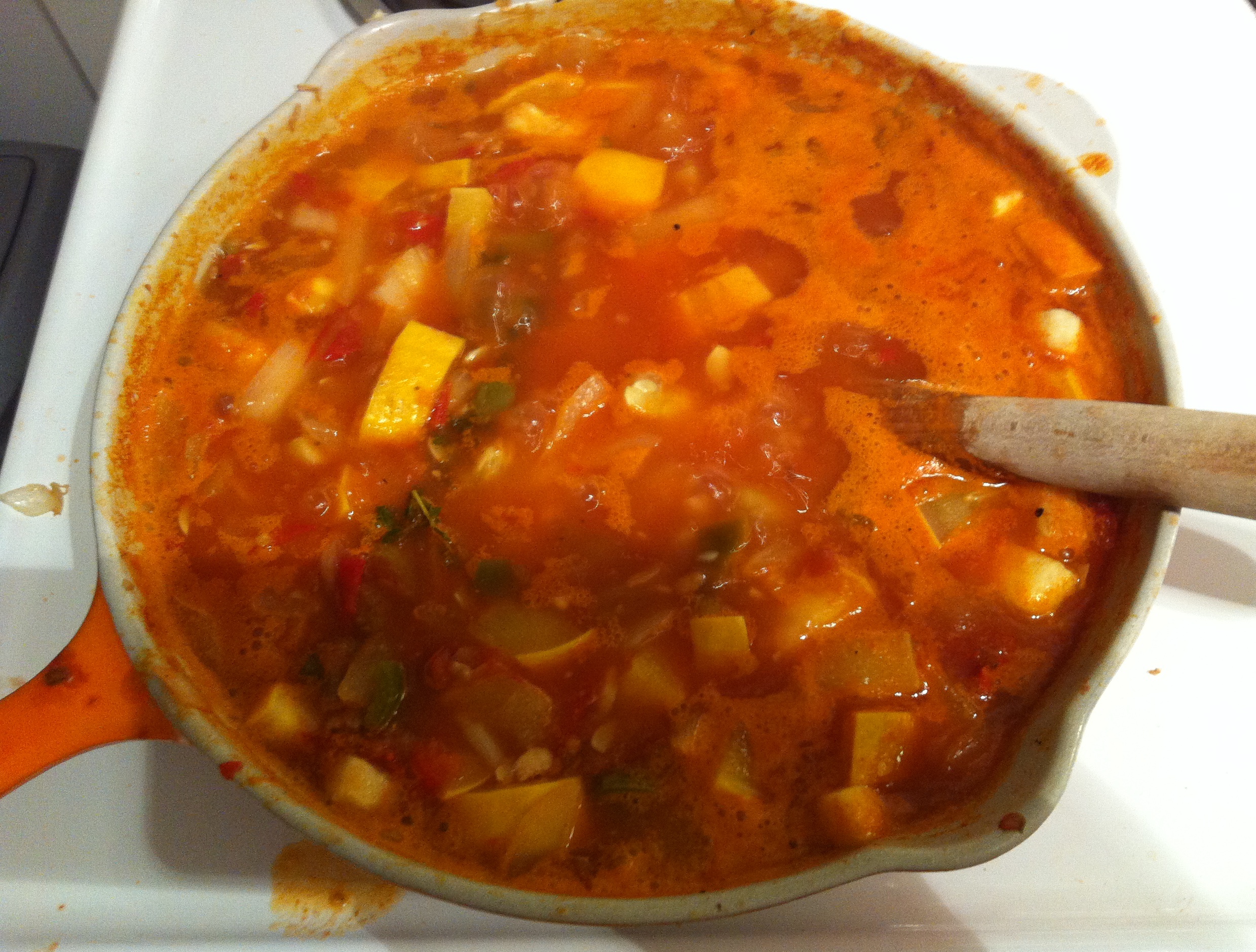 And this evening’s meal (11:03 and it’s still simmering the liquid down)