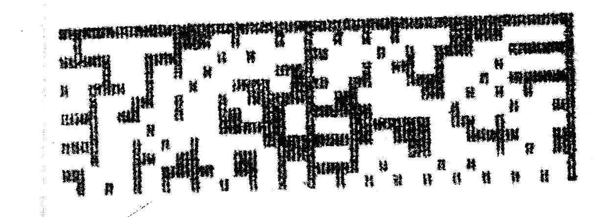 The strata are the linings of security envelopes. Inanna and her sidekick, the scancodes you see on autosorted mail. Her jaunty cap, the Bank of America logo, while he sports the NBC paycock (Pound’s spelling). The speaker is one of the galla, demons of the underworld; to them’s given the work of narration. They’re all blown up out of these: