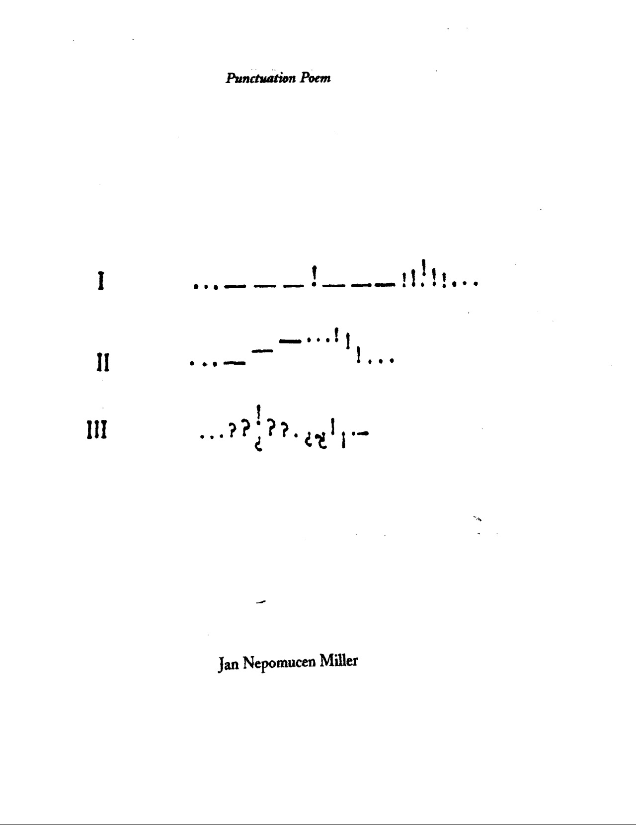 Compose a poem made entirely of punctuation. Then write a short paragraph describing what the poem “means.” Treat the paragraph as a creative extension of the piece — as playful creative nonfiction, not straight-faced literary analysis. Be ready to present both the poem and your explanation to the class.