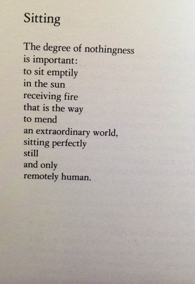 This one just in from shazia-r. “Sitting” by Phyllis Webb. I’m liking how it sits a bit aslant. Leans into its silence.
